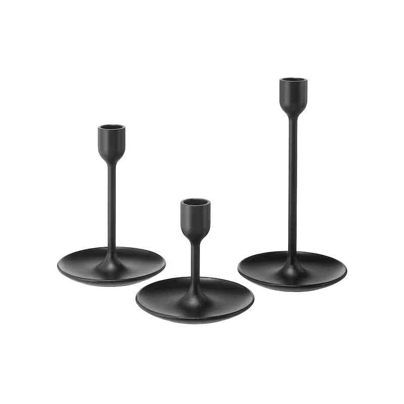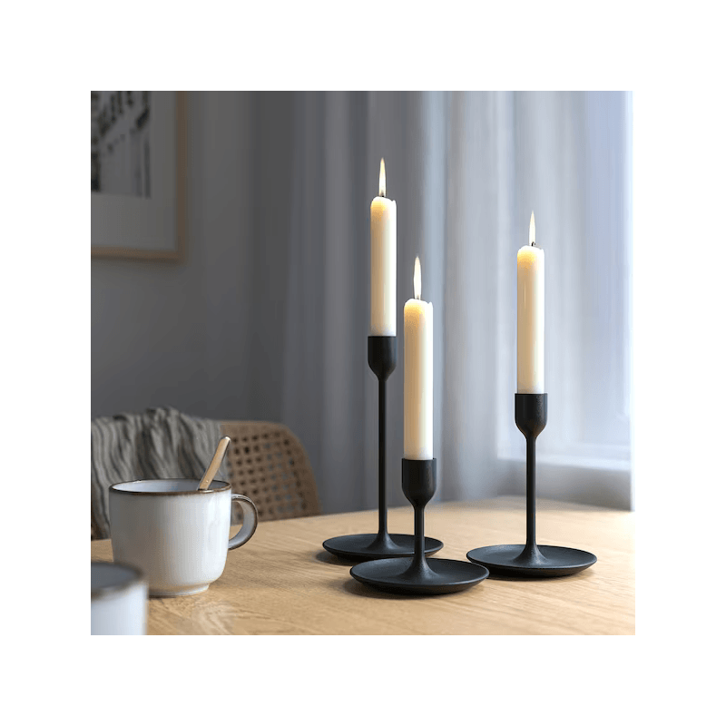 ست سه تایی شمعدان مشکی ایکیا مدل FULLTALIG یک راه عالی برای افزودن لمسی از نور و زیبایی به دکوراسیون شما است. این ست شامل سه شمعدان در ارتفاع های مختلف است که می توان از آنها برای ایجاد جلوه های مختلف نورپردازی استفاده کرد.